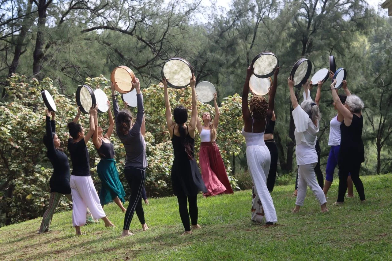 The structure of the retreat is designed to help participants drop deeply into the experience of being in Hawaii. Rather than a rigorous dance training, this will be an integrative journey: daily dancing combined with time to replenish, explore the surrounding beauty, and relax at the beach. Most days will include one long morning dance session and a shorter session later in the day or evening, integrated with nature and frame drum practice. Miriam will offer daily suggestions for beach excursions and hikes, though participants are welcome to spend their free time as they wish. Most outings will be within a 30-minute drive of the retreat center.